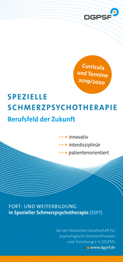 Um die qualifizierte Versorgung von Kindern mit chronischen Schmerzen in Zukunft zu verbessern, bietet die DGPSF ab 2015 eine Weiterbildung für spezielle Schmerzpsychotherapie für Kinder und Jugendliche an. Weitere Informationen zur Fort-/Weiterbildung der Speziellen Schmerzpsychotherapie für Kinder und Jugendliche finden Sie unter www.schmerzpsychotherapie.net